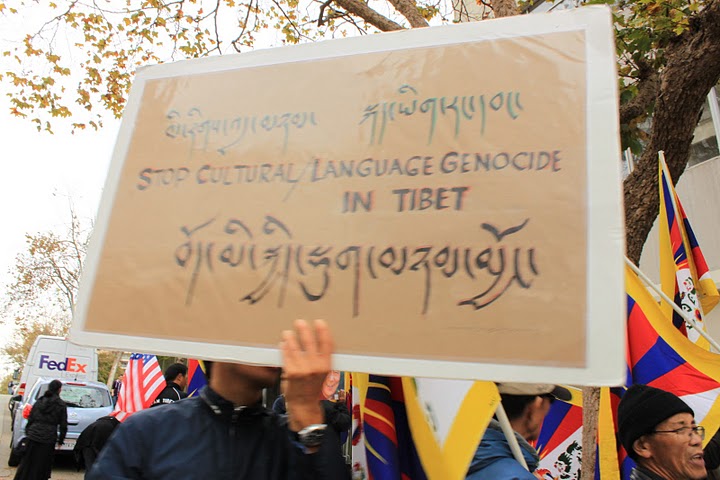 The online Tibetan news site Phayul.com reported more than 1000 students in Tibet marching through the streets of Western China and Beijing carrying banners reading “Protest ethnic minority languages, carry forward Chinese civilization.”