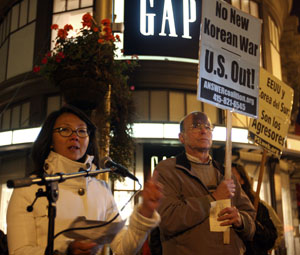 The chill in the night air couldn’t keep San Francisco’s war veterans, students and activists from demanding peace between North and South Korea as they rallied downtown on Nov. 29 in protest of the U.S. military’s presence in South Korea.North and South Korea exchanged artillery fire through the Korean Peninsula on Nov. 23, killing two civilians and two Marines. Although the two countries were divided by the peninsula when the Korean War ended in 1953, organizers said North and South Korea are still at war and the “time has come to negotiate a peace treaty.”